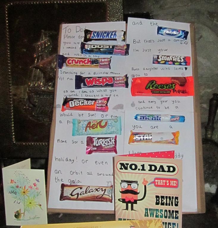 ..I hope she's smart and ate the chocolate bars and just pinned the wrappers to it...