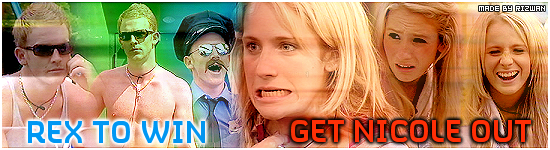 IF WE AGREE TO WRITE TO BB AND COMPLAIN ABOUT REXS ATTENTIONS TO STOP GETTING HMS NOT TO NOM NICOLE HE MIGHT GET STRIPPED FROM HOH AS STUART DID REMEMBER IM GOING TO DO IT ANYWAY