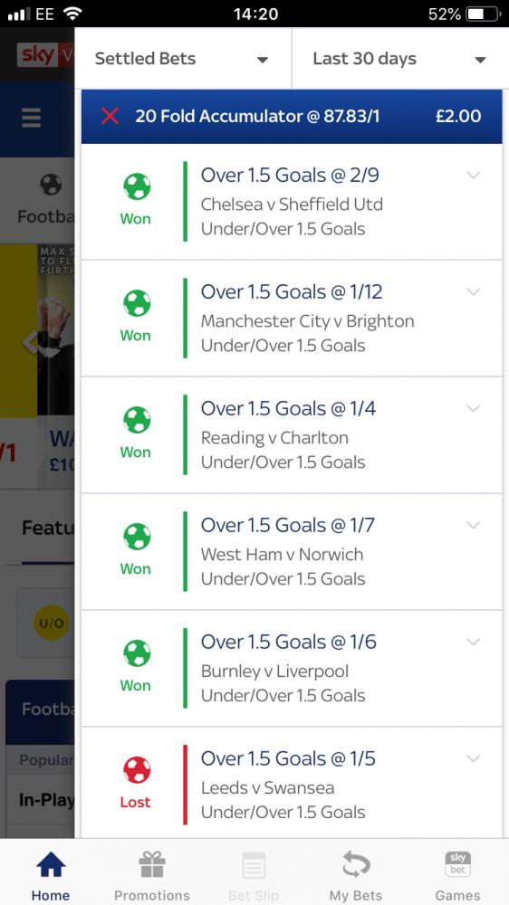 I done a fiver in the middle of the night on an in-play BTTS just needed one goal for over £700, it was dumb bet but i nearly got dumb luck with it lol |