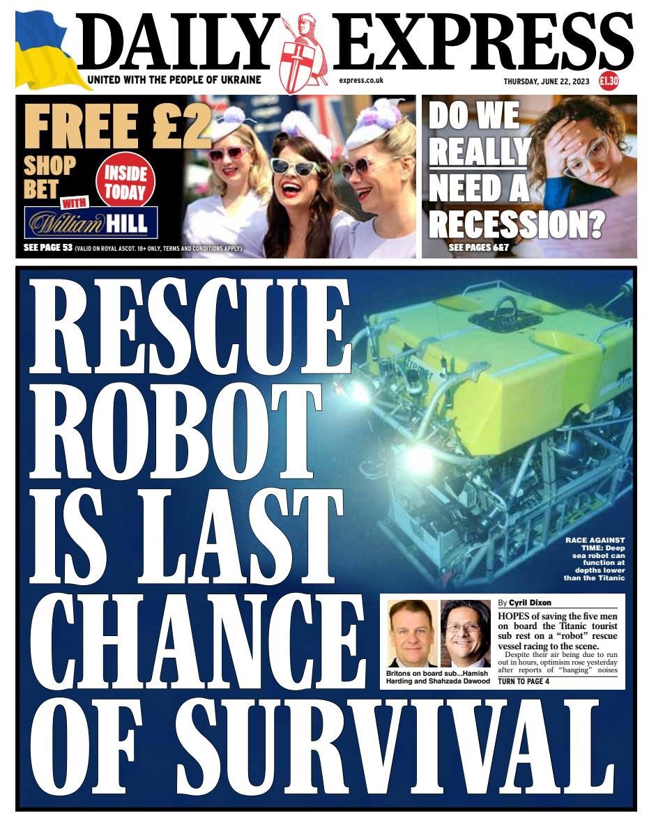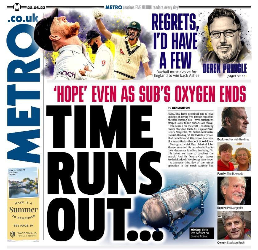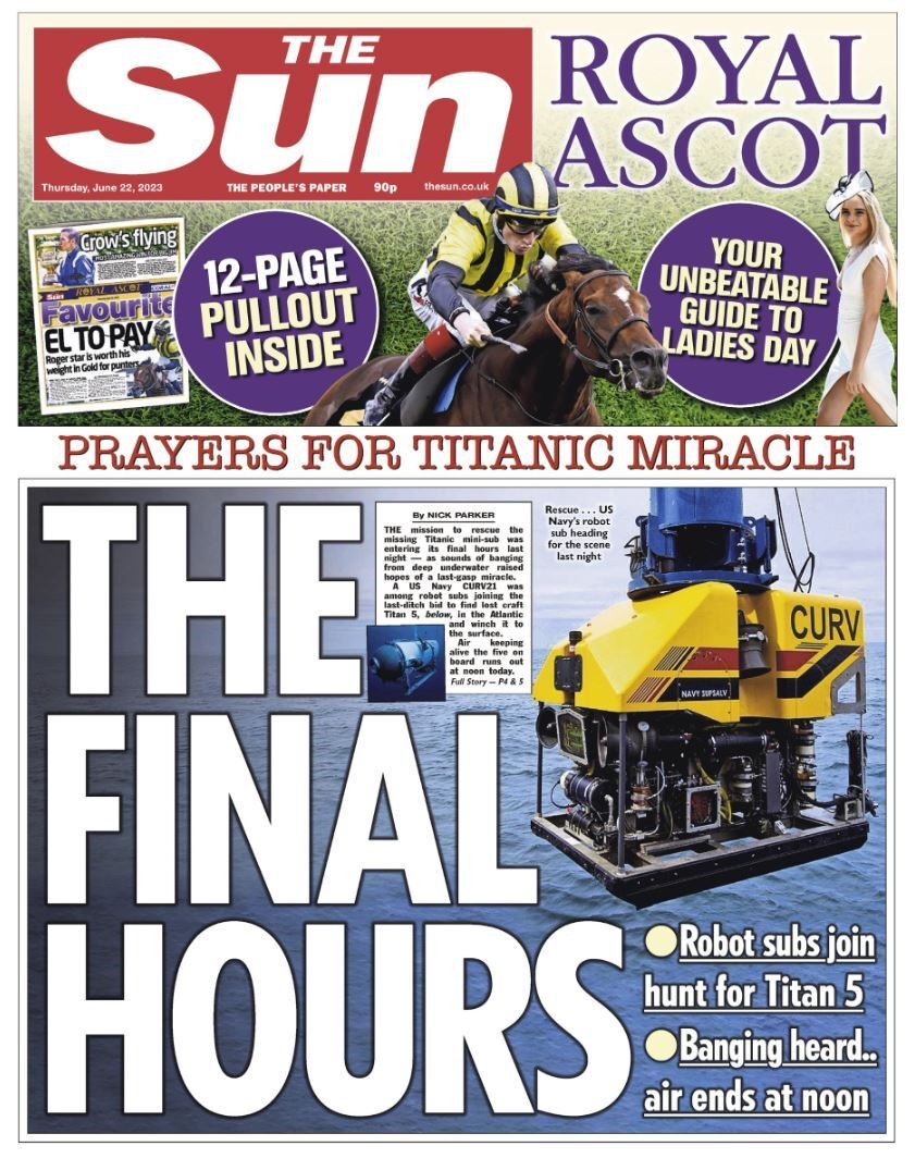 at 12:08pm UK time today. [Stricken Titan submarine will run out of oxygen at 12:08pm UK time: Coastguard makes stark prediction as officials insist hunt for five-man crew is '100% a search and RESCUE' mission but craft has NOT been found leaving situation increasingly desperate] https://www.dailymail.co.uk/news/art...rediction.html Last edited by arista; 22-06-2023 at 02:59 AM. |