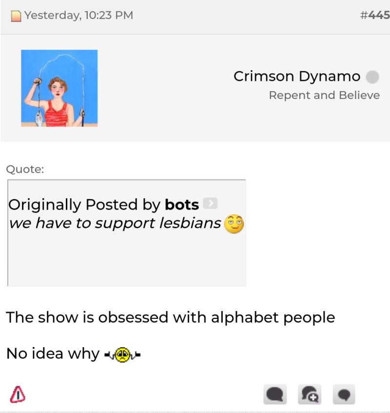 Where did I make the claim that Ali shouldn't be called racist. Labelling Ali a witch is a sneaky tactic by straight people to say she should be killed.
