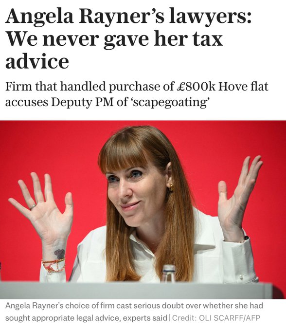 given tax or trust advice… We probably are being made scapegoats for all this.” - Angela Rayner’s solicitors. She has to go. |
