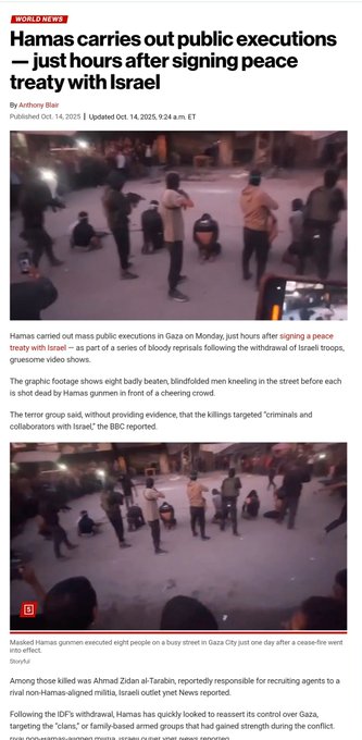President Trump has not made it clear. Hamas Executed 8 men shot in their back of their Heads in the Public Square They are Still in power Trump has not changed the Power Warning : moment before death is on this Link https://www.ndtv.com/world-news/hama...arning-9458416 Last edited by arista; Today at 03:42 PM. |