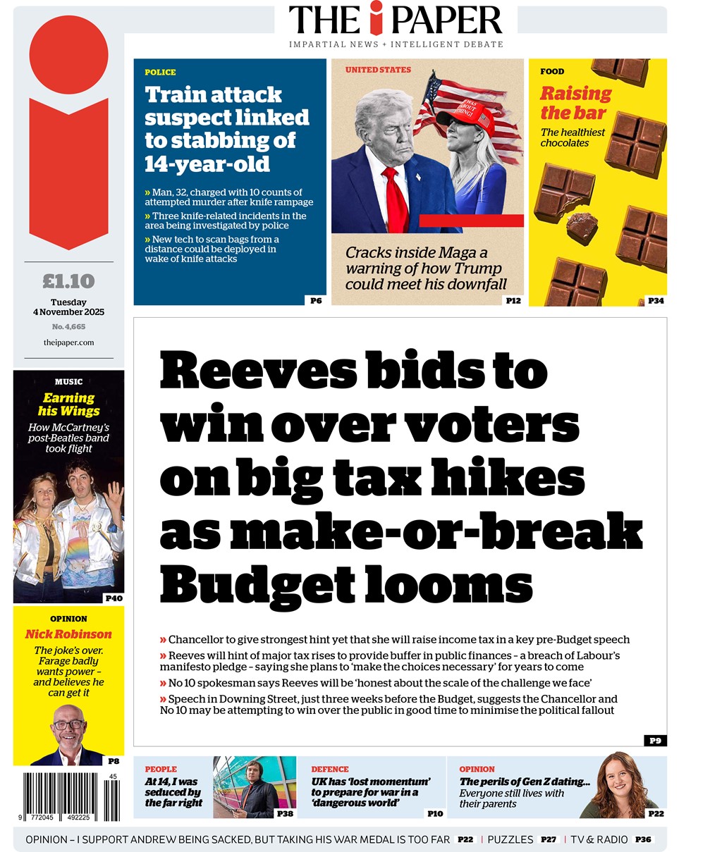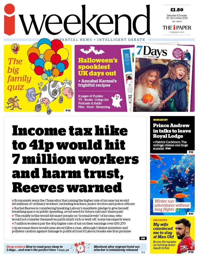 [The chancellor is in talks to increase the basic rate of income tax by 1p - and may also target additional and higher rates,] according to The i Paper.