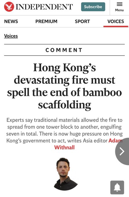@Finnlau_cd UK chartered surveyor. Hong Kong-born policy advocate. Advisor @hk_watch . China observer. Campaigner. Alumni @UCL . I don’t often speak in my professional capacity as a Hong Kong–born, UK-chartered construction professional (MRICS, MAPM, NECReg, among others). But I need to address inaccurate reporting about bamboo scaffolding in the Hong Kong Tai Po fire. HK is my homeland - renowned for its skyscraper skyline and the traditional craft of bamboo scaffolding. Over its 185+ year history, bamboo has been widely used in HK construction for its flexibility, ductility, lightness and its FIRE RESISTANCE. Contrary to public misconception, the physical structure of bamboo itself makes it a flame-resistant material. Rather, it is the corrupt practice of using non-compliant and flammable mesh netting that is the likely cause of the fire’s rapid spread. Those mesh materials can accelerate vertical and lateral fire spread (from lower floors to higher floors, and between blocks). This is primarily evidenced by photos showing the structural integrity of bamboo after a 2-day sustained fire. More broadly, to facilitate the absorption of HK into the PRC, the HK gov has been keen on dismantling Hong Kong unique culture - bamboo craft, neon signage, historic buildings and languages to name a few, alongside ongoing crackdown on judiciary system and free speech. Instead of launching an independent investigation immediately (as the UK did after the Grenfell Tower fire), the HK gov announced on the following day it would accelerate the switch to (Chinese-imported) metal scaffolding without first completing a full investigation. It also ignored reporting and prior whistleblowing about the widespread use of non-compliant, flammable mesh nets on HK construction sites in the previous year, as well as brushing off potential legal negligence of senior HK gov officials on the 2024 whistleblowing. I understand it can sometimes be hard to get a full picture while reporting fast-moving incidents. Still, I urge journalists to correct inaccuracies when they arise. Reinforcing misconceptions about bamboo craftsmanship only supports a misleading official narrative. https://x.com/finnlau_cd/status/1994...815857653?s=20 Last edited by Crimson Dynamo; Today at 01:32 PM. |