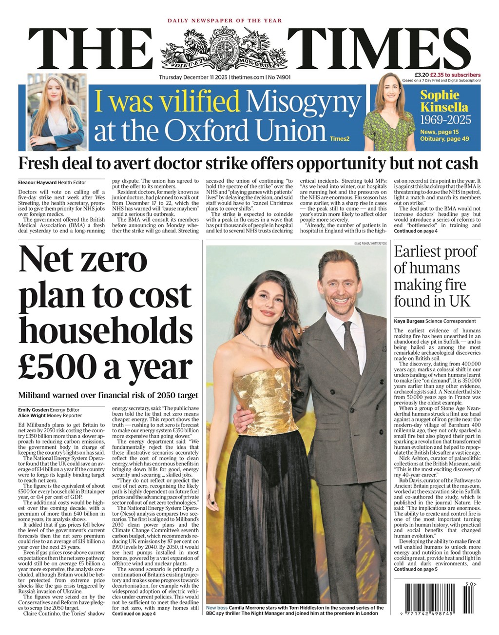 [A leading warning by the National Energy System Operator, which said that Ed Miliband's net zero by 2050 plan could cost the country Ł350bn more than a slower approach.]