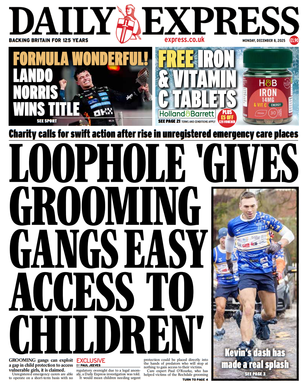 [There is a "legal anomaly" which can allow unregistered emergency carers to "operate without regulatory oversight". An investigation by the newspaper has been examining gaps in child protection rules, which it suggests that grooming gangs could exploit.]