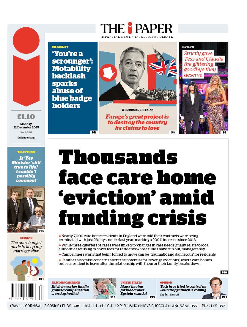 [Nearly 7,000 care home residents in England had their contracts terminated with 28 days' notice last year, with campaigners warning of forced moves being "traumatic and dangerous", The i Paper reports.]