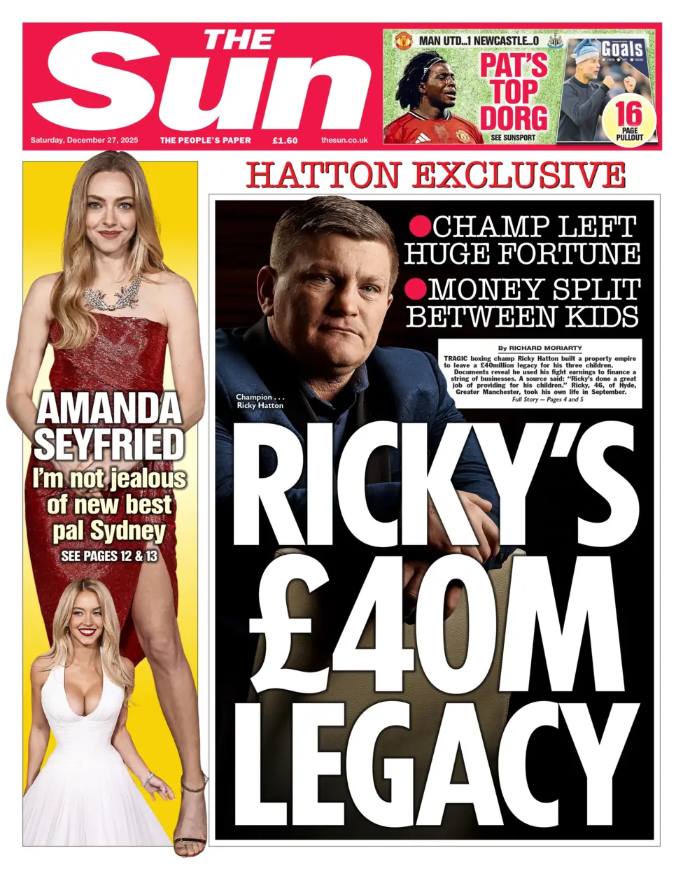 [Late boxing champ Ricky Hatton's "£40m legacy" for his children. The paper says the fortune from Hatton's property empire will be split between his three kids.]