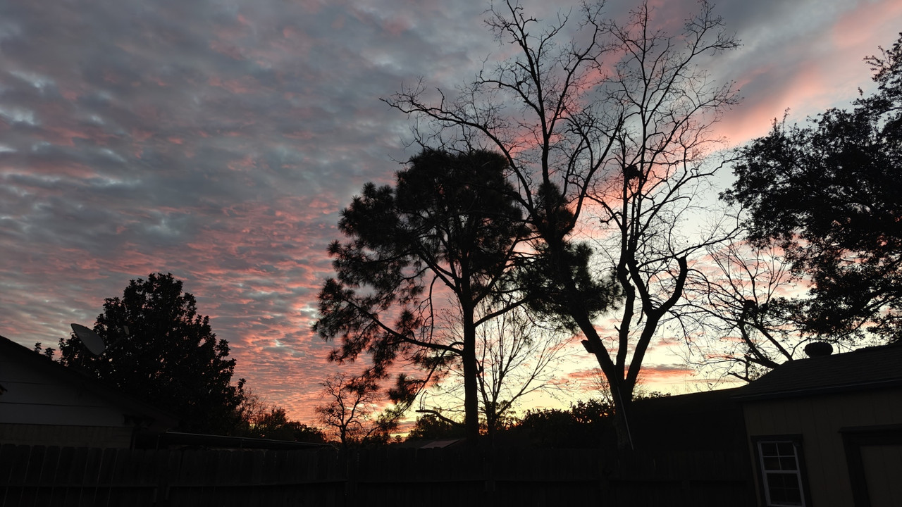 We are having a nice sunrise. "Fish Mackerel" in parts (especially overhead off camera) ![]() Unfortunately my better camera was asleep in bedroom with husband and I don't want to wake him.