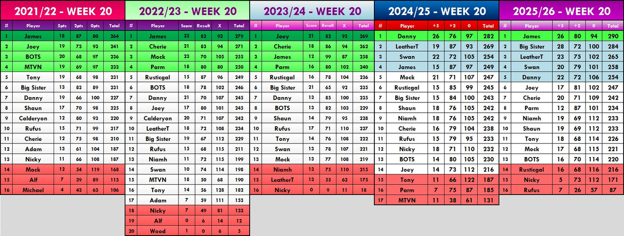 This is how the table looked over the last 5 years at this stage...