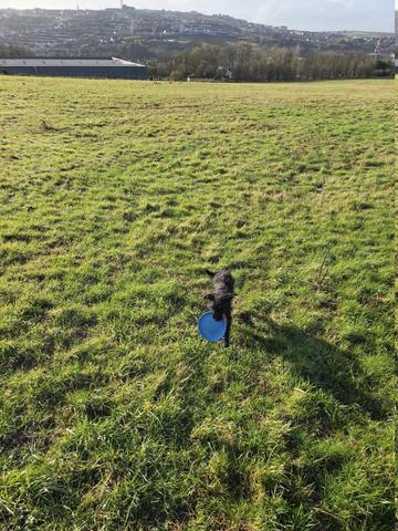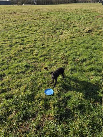 He's dropped his frisbee like a good boy. My dog is, shall we say reluctant to give up his ball. You have to bargain with him.