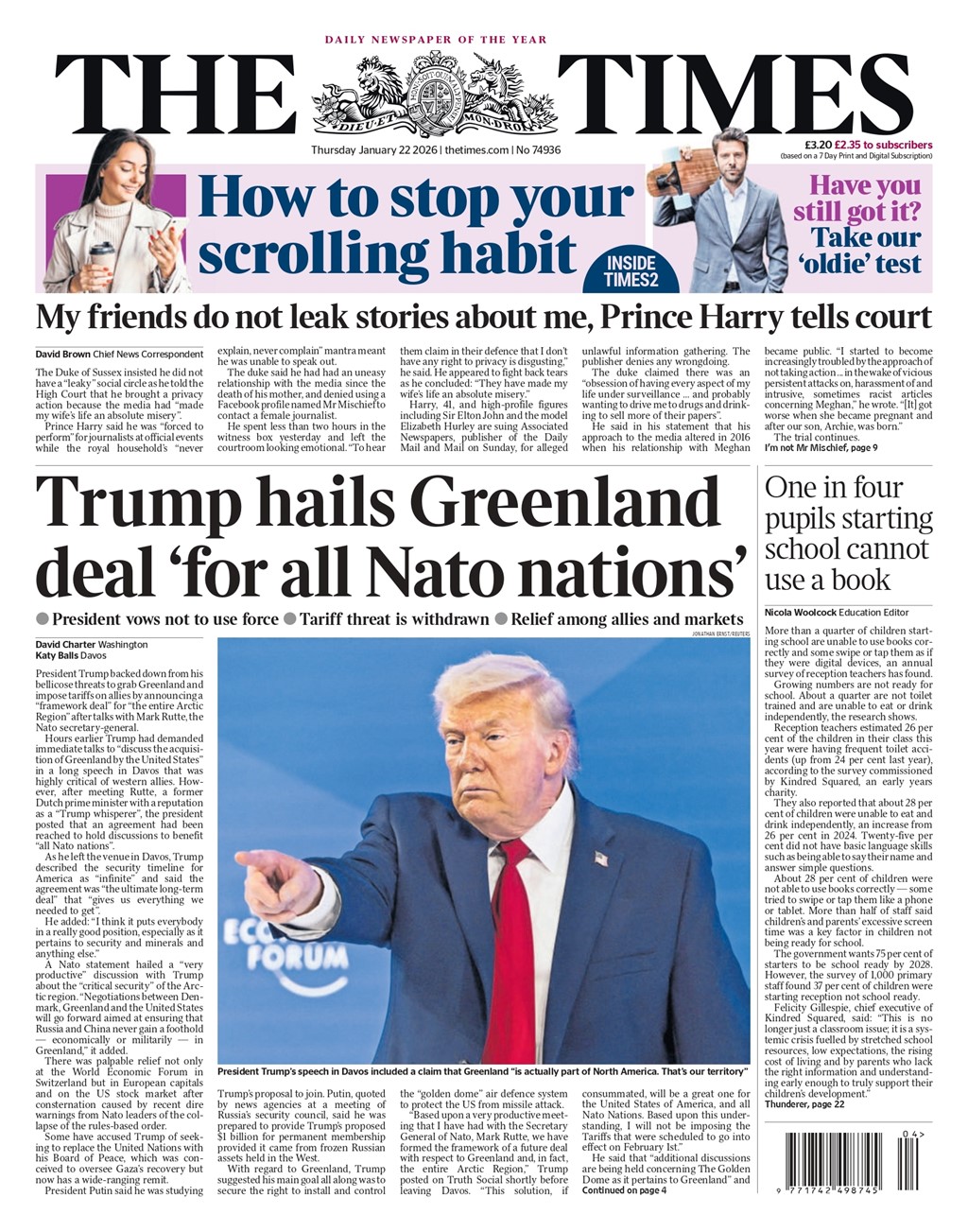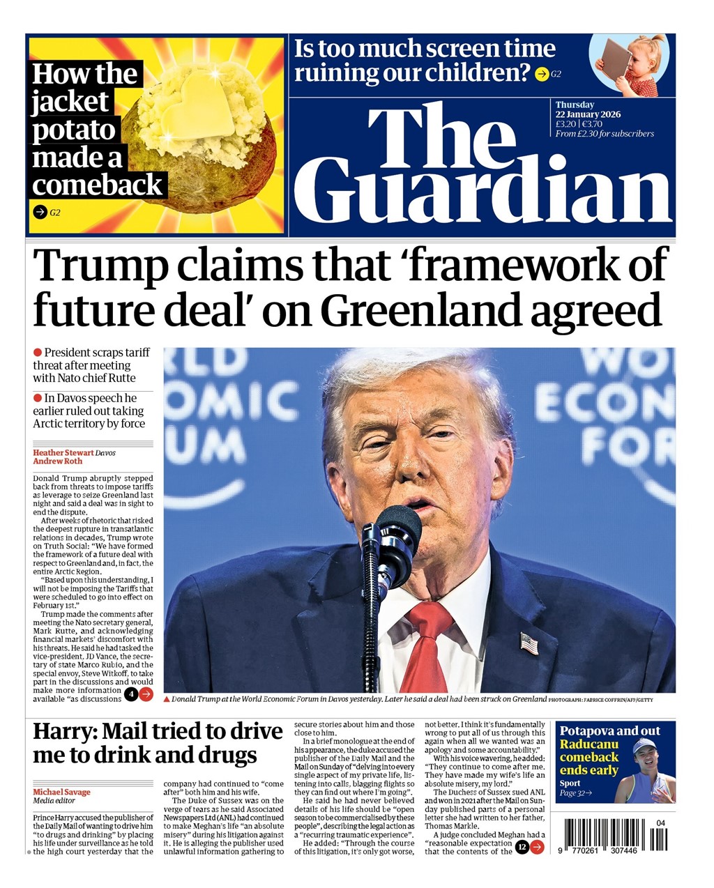 “Trump drops threat of tariffs over Greenland after Nato talks in Davos”