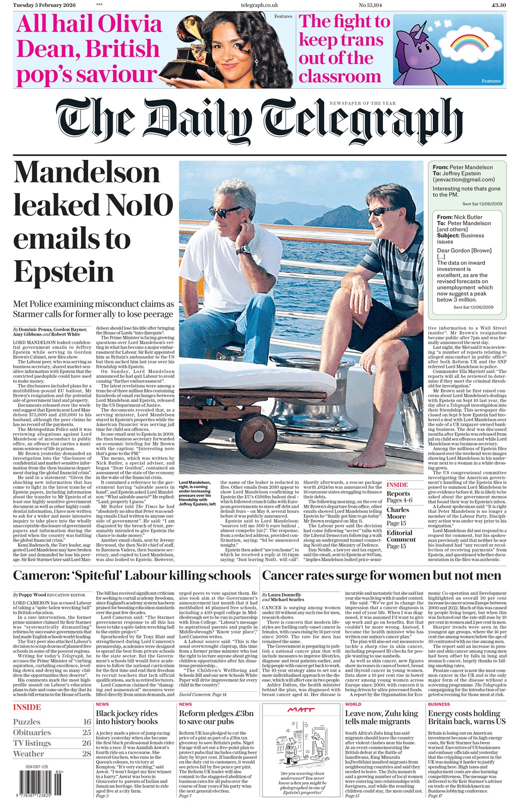 @ZiaYusufUK · 36m So now there’s proof Peter Mandelson emailed Epstein with an early heads up of: 1) Gordon Brown’s resignation 2) the €500 billion bailout to save the Euro in 2010. Both before the public knew. This is open and shut stuff. Mandelson is going to jail. |