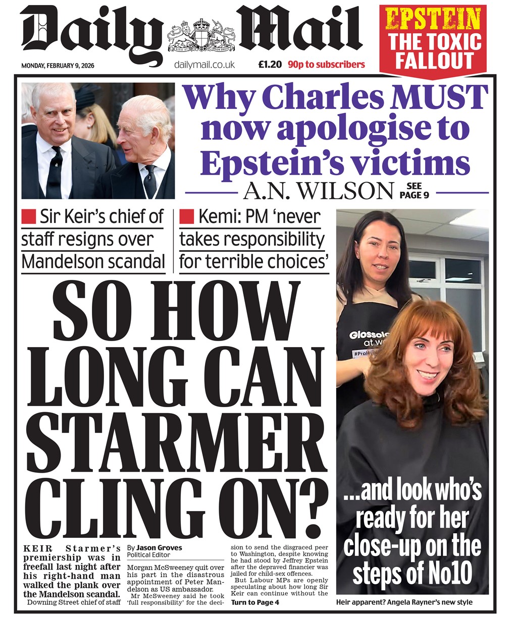 ["Starmer apologises to Epstein victims as crisis over Mandelson ties deepens" headlines the Financial Times, with one minister saying that the PM could see an "unedifying end".]