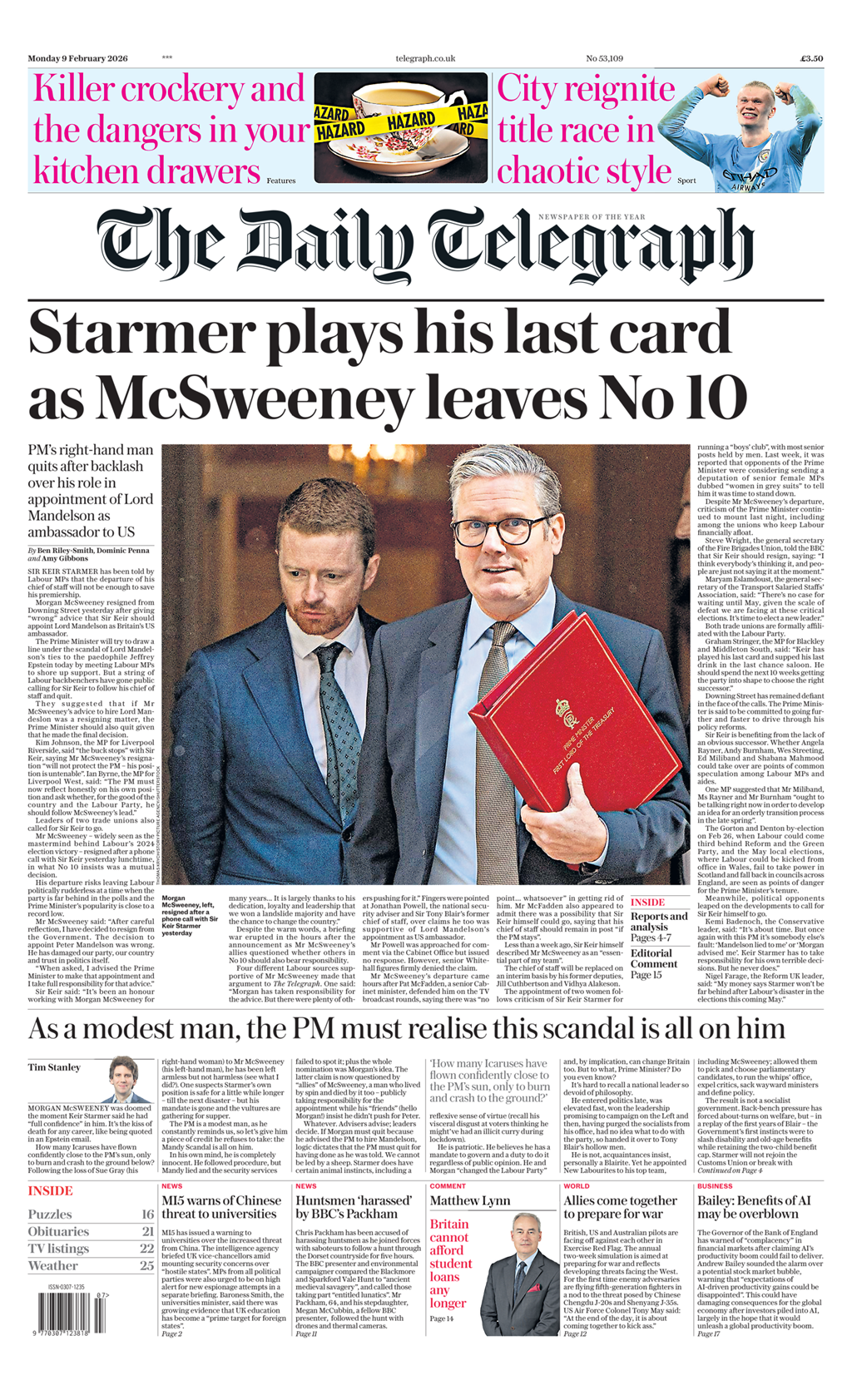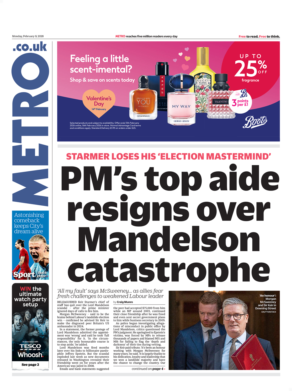 He helped Starmer But messed up BBC : [Morgan McSweeney quits as the Prime Minister Keir Starmer's chief of staff "The decision to appoint Peter Mandelson was wrong," he says in a statement, adding he leaves "with pride in all we have achieved mixed with regret at the circumstances of my departure"] Loads of Front Pages later tonight Reform UK Leader said this would happen Last edited by arista; Yesterday at 02:34 PM. |