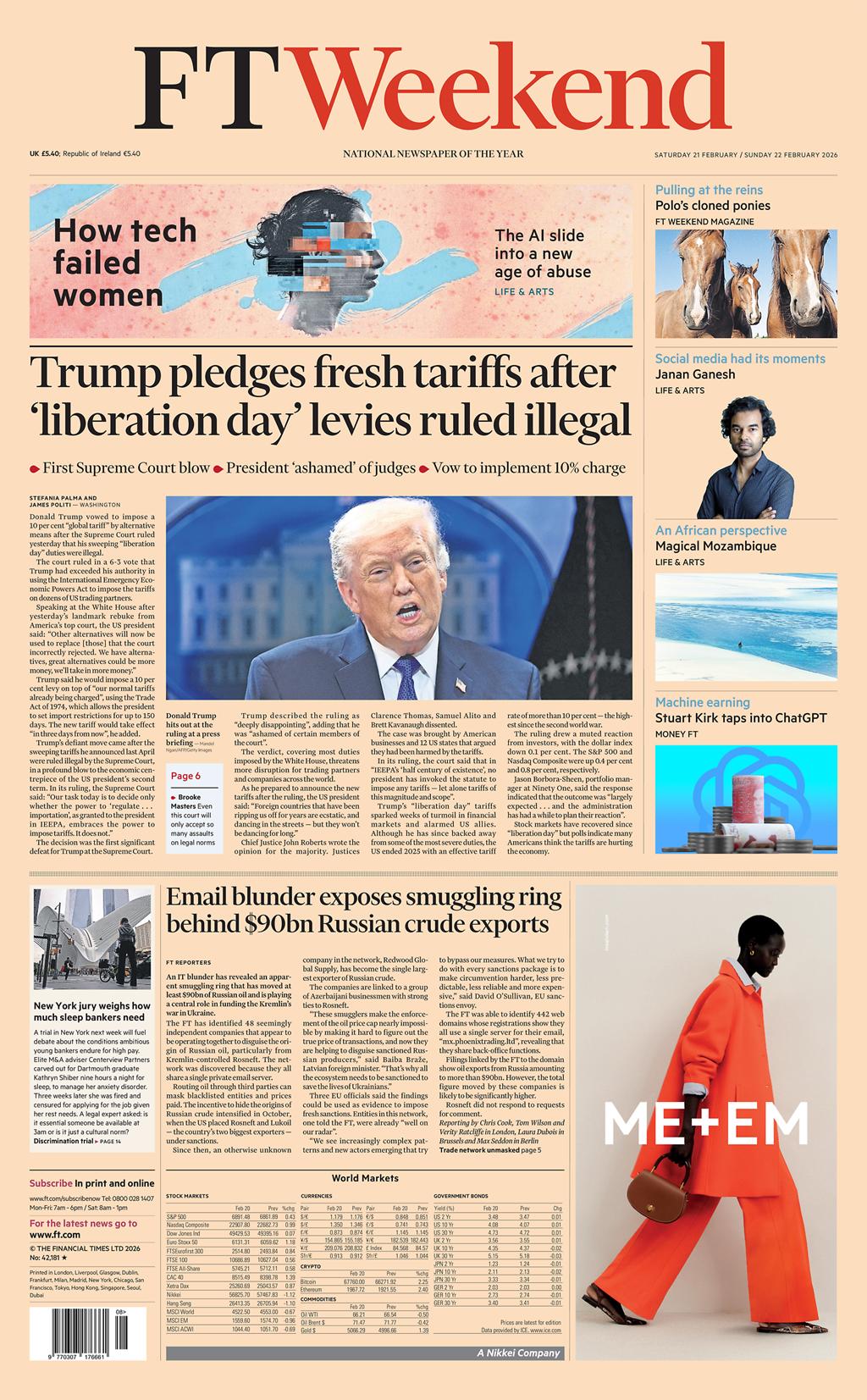 US President Donald Trump has said that he will impose global tariffs of 15%, as he continued to rail against a Supreme Court ruling that struck down his previous import taxes. Trump said on Friday that he would replace the tariffs scrapped by the court with a 10% levy on all goods coming into the US. But on Saturday, he announced on Truth Social that this would be increased to the maximum allowed under a never-used trade law. These will come into force on Tuesday 24 February and can only stay in place for around five months before the administration must seek congressional approval. Trump said his administration had reached the decision following a review of the "ridiculous, poorly written, and extraordinarily anti-American decision on Tariffs issued yesterday". In a 6-3 decision, the Supreme Court found that the president had overstepped his powers when he introduced sweeping global tariffs last year using a 1977 law known as the International Emergency Economic Powers Act.