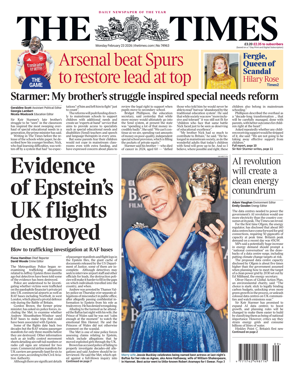 Jessie Buckley won Best Actress honour for her role in Hamnet, Jessie is the only star in the Front Pages