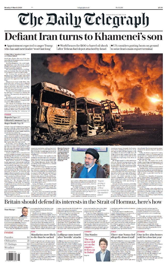 US Navy during airstrikes on the port city of Bandar Abbas NATO have shot down a second Iranian missile in Turkish airspace Oil prices rise to above $100 a barrel for first time in four years Donald Trump says he and Benjamin Netanyahu will make 'mutual' decision on when to end the Iran war Vladimir Putin offers 'unwavering support' to Iran's new Supreme Leader Mojtaba Khamenei Bahrain's only oil refinery has been struck by an Iranian missile as Tehran targets energy installations across the Gulf Pete Hegseth, the US Defense Secretary, last night guaranteed Iran will 'surrender' and President Donald Trump will set the terms of their defeat Mojtaba Khamenei, the 56-year-old son of Iran's late supreme leader Ali Khamenei, was selected by the country's Assembly of Experts to succeed his father The US military has confirmed a seventh service member has been killed following an Iranian attack in Saudi Arabia] All above data taken from this link https://www.dailymail.co.uk/news/art...e-updates.html |