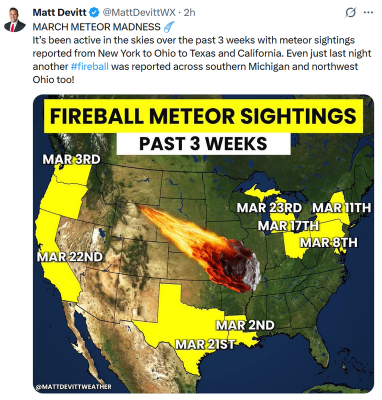Apparently a meteor came through over Houston yesterday and a piece went through someone's roof and landed in a bedroom and bounced around right back up into the ceiling. I was wondering why it sounded like it was thundering while we were sitting but it sounded a bit different. It didn't sound terrestrial. The rumbling was kinda crumbly and echo-y like it moving through the sky. Kinda hard to explain, actually. Otherwise, perfect blue sky weather for sitting outside and not a single cloud to be seen. We were not as close to it as other people so it didn't rumble the house, but we're on the NW side so not that far. Everyone in town heard something:
