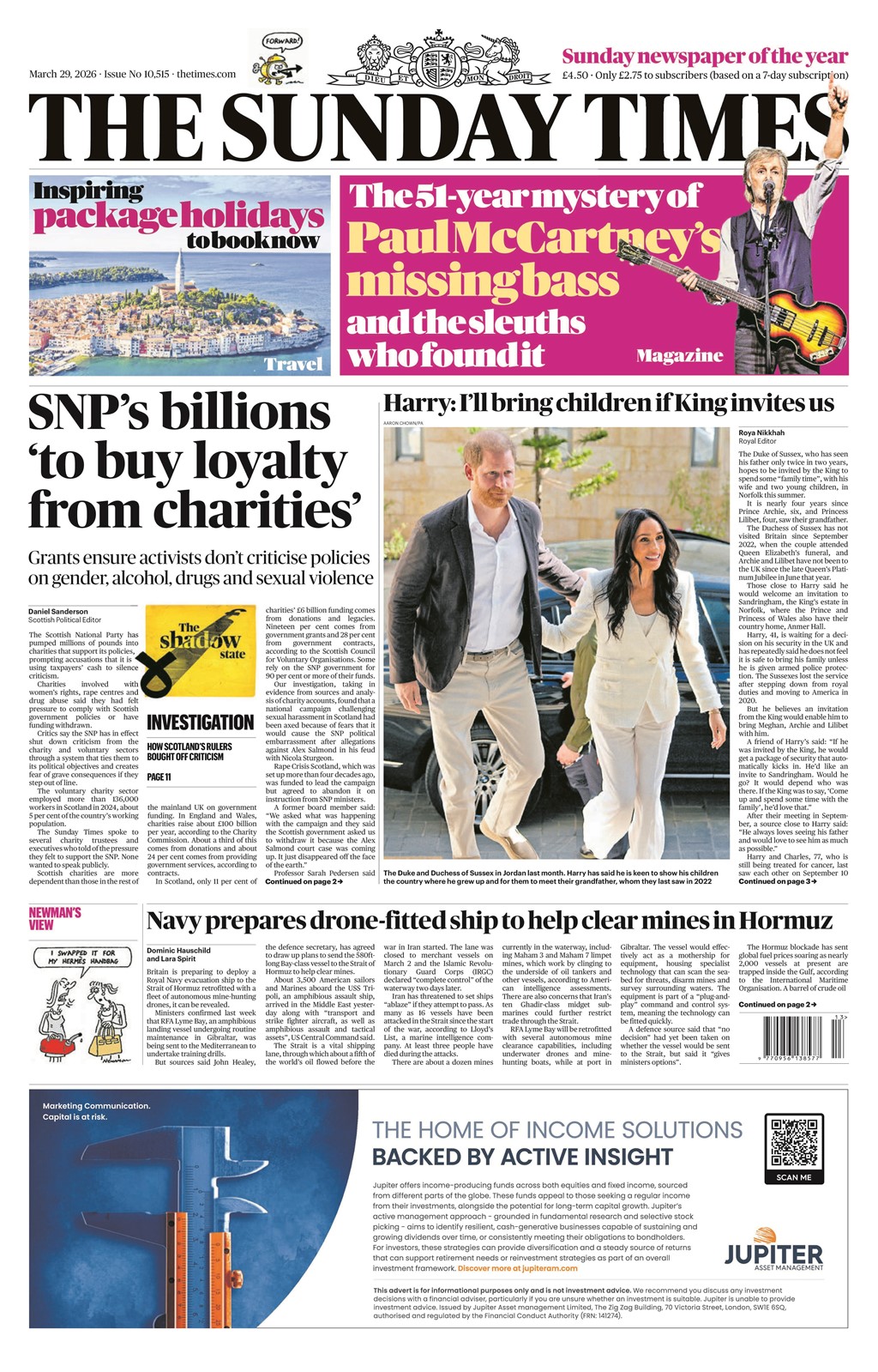 [Prince Harry and his father, the King, are both in London this week, but won't see each other,] reports the Sunday Mirror.