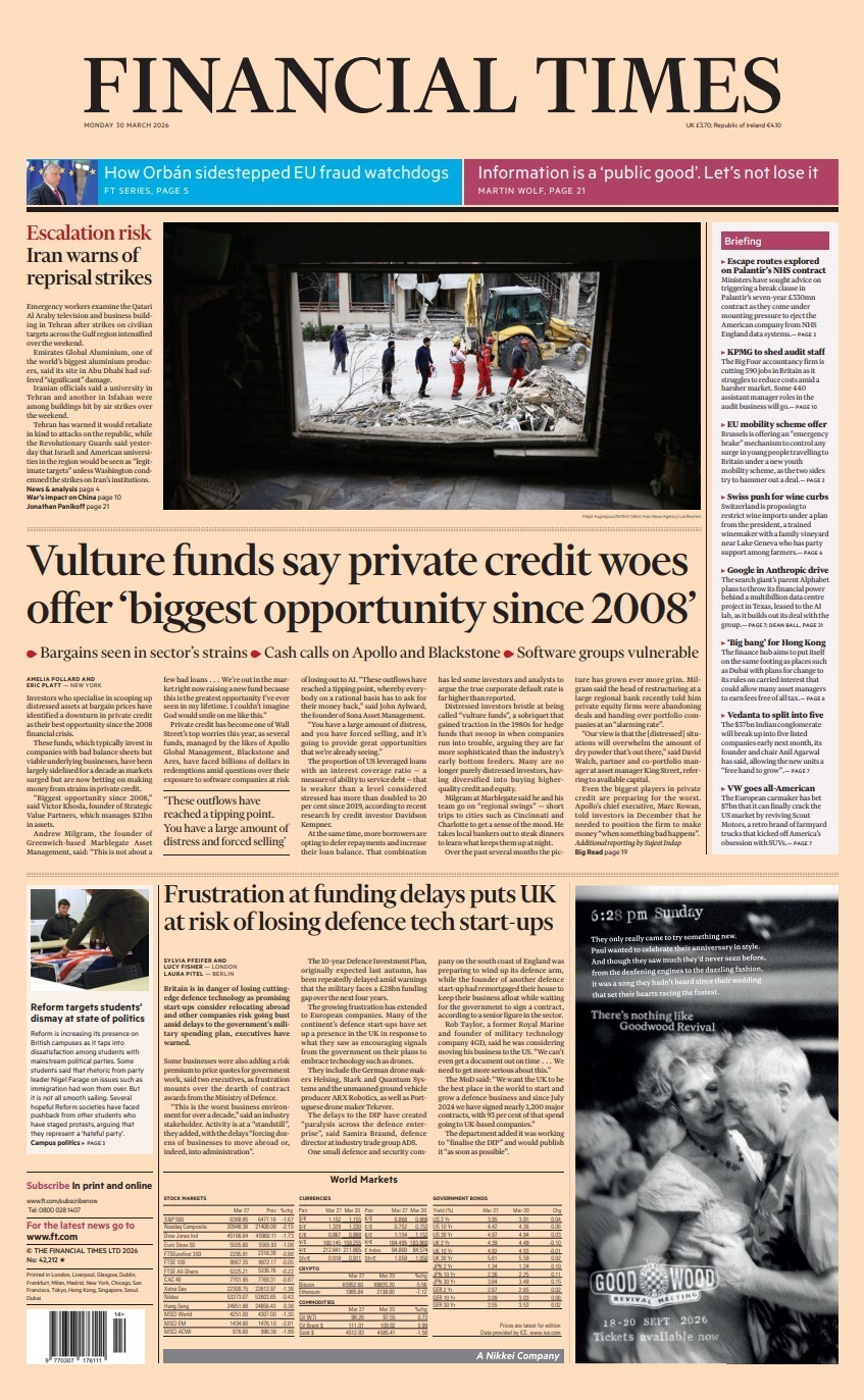 French authorities foiled a suspected terrorist attack on the Bank of America’s Paris headquarters. A 17-year-old boy was arrested and another suspect is on the run after they allegedly tried to light a five-litre canister of flammable liquid taped to a mortar carrying 650 grams of explosive powder. The attack was thwarted by police at around 3.30am local time in the eighth arrondissement in the heart of the French capital. While it is not known who ordered the attack, the French government has been on high alert for domestic terrorism since the war in Iran, ramping up security around American and Israeli sites. It is believed the suspects acted on orders, having been recruited on the social media platform Snapchat in exchange for €600, according to initial reports from French publications. (Snapchat again but Starmer wants you to belive X is the problem) DT |