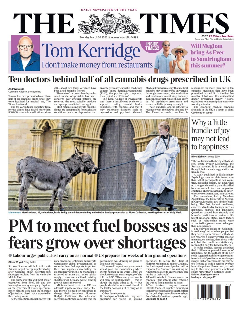 [Prime Minister Sir Keir Starmer will meet executives from Shell, BP and the Norwegian energy company Equinor, The Times reports, after warnings about potential fuel shortages Due to the conflict in Iran.]