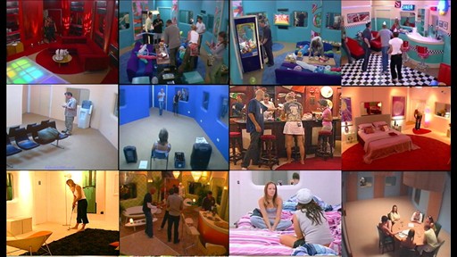 'E4/Banksy' theme, designed by Patrick Watson. Elstree compound. Secret room(s): There were some staris that lead to an upstairs room John used for a task. Notes: The space used for the Half Way House, Australian room and various tasks for BB8 returned for a few more tasks in Celebrity Hijack. The pool from BB8 was replaced with a hot tub. The bedroom was completely different from the one in BB8. It also had access to a gym. The bath tub was moved to its appropriate place in the bathroom whilst the fridge and oven were moved in to the kitchen. The diary room chair from BB8 returned but was lit with purple lighting whilst there were purple paint splodges round the living room. Big Brother 9 (2008)/Celebrity Big Brother 6 (2009) 'Shattered' theme, designed by Patrick Watson. Elstree compound. Notes: This was the first house to have an offical task room. This house was divided via a heaven/hell divide similar to BB3's rich/poor twist. The bathroom, luxury bedroom and most of the garden (including pool) belonged to the heaven side, whereas the kitchen, B Block bedroom and jail end of the garden were on the hell side. For CBB6 2 more bedrooms were installed. One for LaToya Jackson coming from the B Block bedroom, and one for the Head of House by the luxury bedroom. The blue bathroom was repainted purple for CBB6. The BB9 garden was painted blues and yellows for CBB6 whilst the pool was replaced with carousel horses, the jail was made larger, and the nomination pod used in BB9 was replaced with a heated seating area. The overall series theme of CBB6 was 'celebrity' so the CBB6 house added a few stars to the carpets and wall pannels. Big Brother 10 (2009) 'Basic' theme, designed by Patrick Watson. Elstree compound. Notes: This house was sh!t. But I'll let you decide. For the first time every area in the house was contained within its own respective room e.g. the kitchen was in its own room, the dining room was in its very own room and the living area was in its own room. Supposedly several features and rooms were symbolic or representative of previous BB series which would fit in with the BB10 thumb print/identity logo. Perhaps the fact it shares an almost identical layout to BB9's house is actually a stroke of genius by mimicking what BB2 was to BB1? Or perhaps it was just credit crunched and/or lazy. You decide.