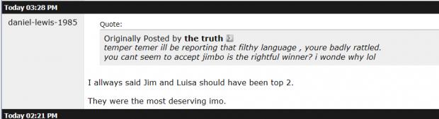 You cant find it in you to say jimbo deserved it and you also condoned the fact they wrongly libelled him a sexist pig in there, even though there was no evidence to support it. that means you are being 100% hypocritical with your double standards.