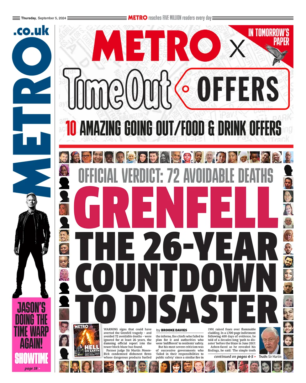 [The Times reports that the firm behind the Grenfell refurbishment that saw flammable cladding added to the outside of the building has been prevented from closing down. The paper says Studio E, which was found by the inquiry to bear a "very significant degree of responsibility" for the disaster, has been in liquidation for more than four years but cannot be dissolved while investigations are ongoing.]