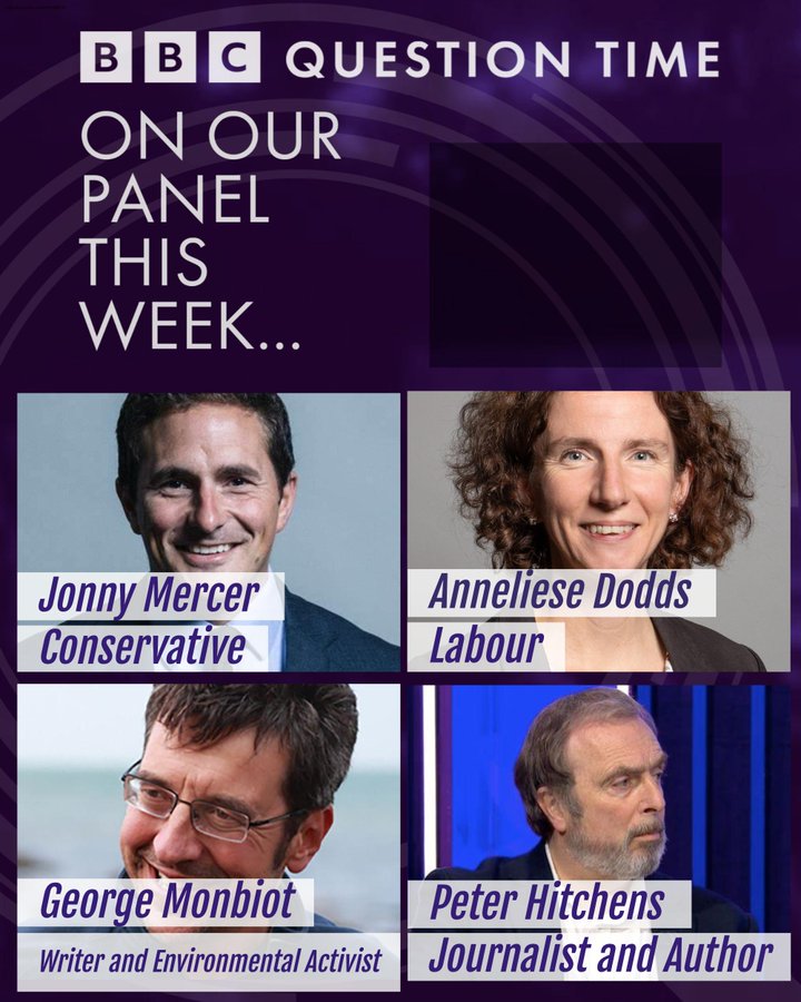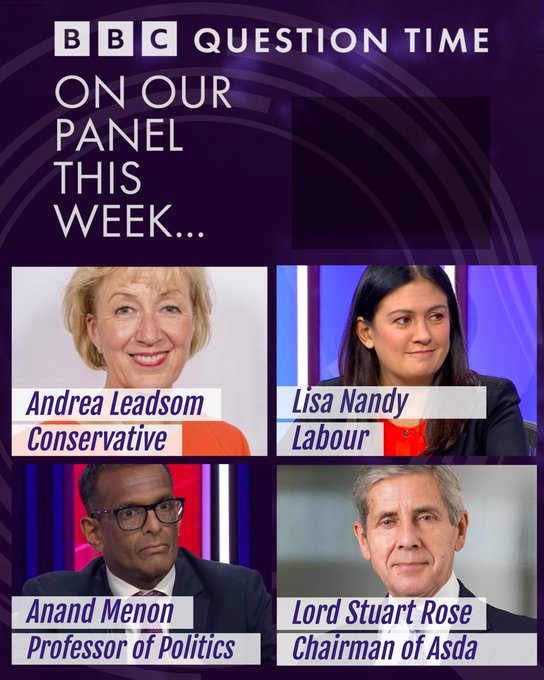 Petersfield live on BBC iPlayer from 8pm or on BBC1HD 10:40PM https://twitter.com/bbcquestiontime/...51234157728101 Last edited by arista; 07-12-2023 at 06:29 PM. |