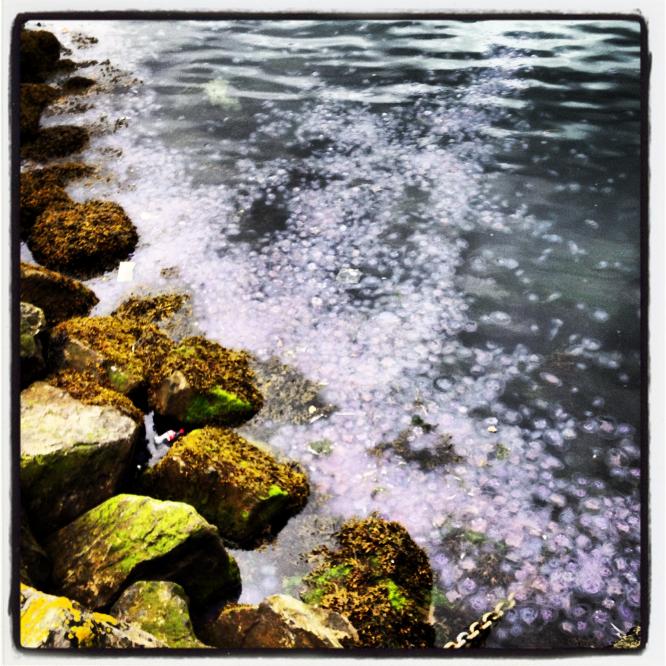 Picture I took yesterday of a swarm of jellyfish right at the water's edge up in the north-east of Scotland!