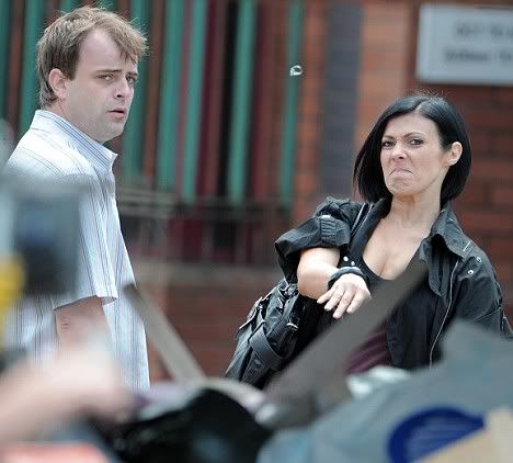 ![]() THIS is the dramatic moment when Corrie love rat Steve McDonald’s bad behaviour finally catches up with him. Heartbroken Michelle Connor (Kym Ryder) rages at her cheating fiancé after discovering he had a drunken one-night stand with the Street’s resident bike Becky. The firey barmaid suspected her man had been unfaithful, but blamed it on Leanne. When she finds out the truth, she angrily confronts Steve and chucks her engagement ring in a skip, shouting 'It's finished'. Cowardly Steve pleads his innocence claiming he was so drunk he can’t remember anything, and is forced to jump into the skip to retrieve the ring. The incident is the latest in a string of bad events for old McDonald who spends a night behind bars for fighting with Dan this month.