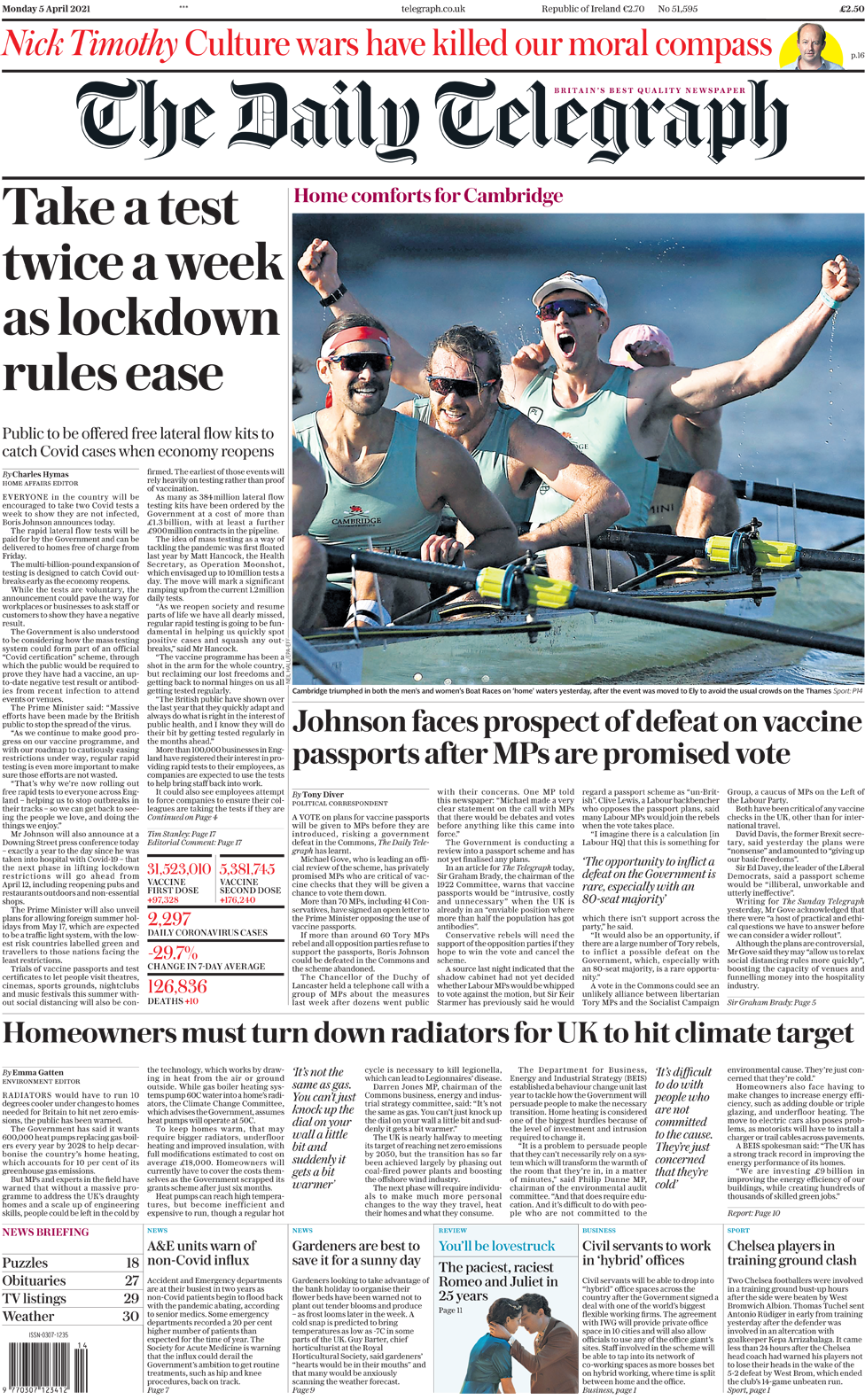 as it is revealed the first pilot events to help nightlife reopen will focus on testing before and after entering venues - as ministers warn certificates for public events might not be ready until Autumn] OK Vicky is that better for us? https://www.dailymail.co.uk/news/art...passports.html |
