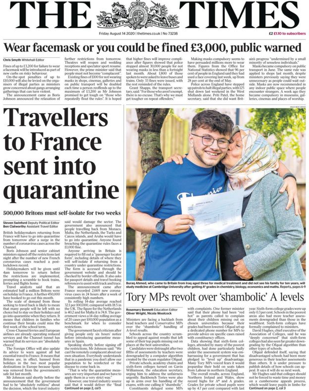 People arriving from France will have to quarantine for 14 days from Saturday