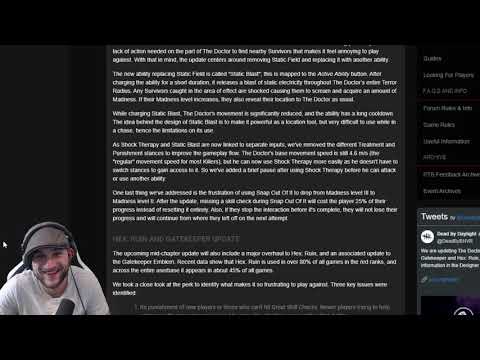 Killer is called The Blight (otherwise known as the Alchemist from that Pustula Petals halloween event 2 years ago) and the survivor is a German hottie called Felix ![]() Can't find a photo of the killer but here's a clip of him Mori-ing someone ![]() ![]() Once this update goes live (probably 3 or 4 weeks from now) the Springwood (Freddy Kreuger) maps will look a lot different, not sure if there's any other maps changing yet but the lockers and generators appear different so maybe?? There're also new offerings to affect where the escape hatch spawns, and where the basement will be, but since there are maps where the basement can only be in one place (the Saw map) this seems confusing ![]()