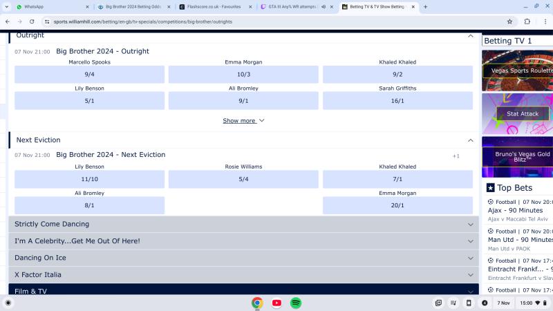 Baked Potato - 1/2 Ali Bromley - 1/1 Lily Benson - 2/1 Khaled Khaled - 3/1 Emma Morgan - 8/1