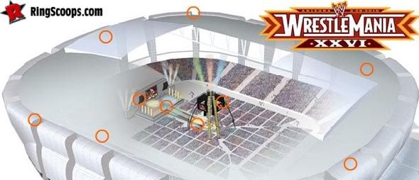 Not sure if this has been posted but here is a rough diagram of the WrestleMania setup. The roof will be left open with a thingy over the ring like WrestleMania 24.