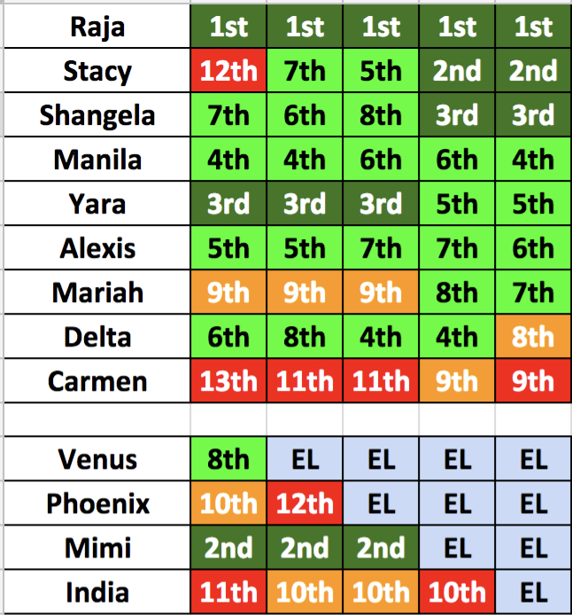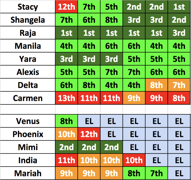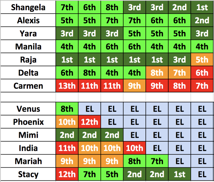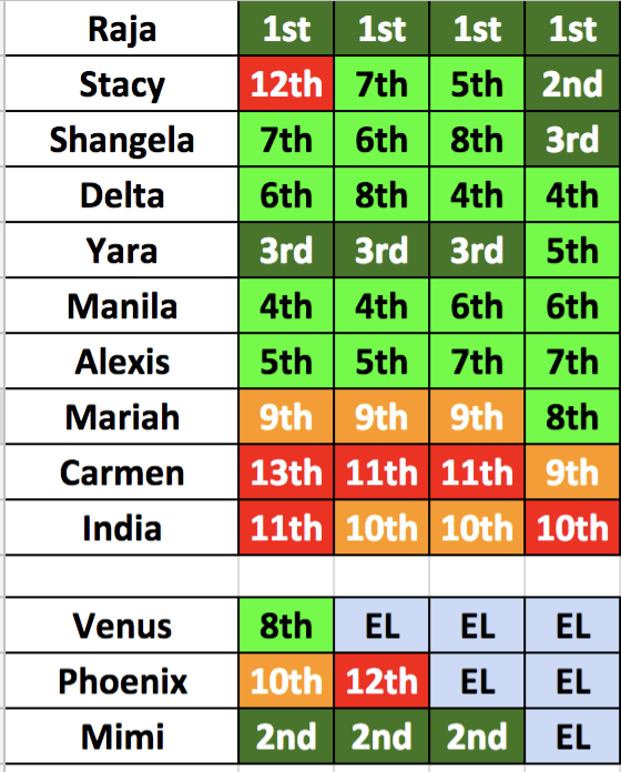 Yet another enjoyable episode. Not as good as the past two but we FINALLY see a snippet of drama and I guess here is where the Season 3 clique forms with Raja and Delta etc? But can we TALK about the Amy Winehouse accent impression? ![]() |