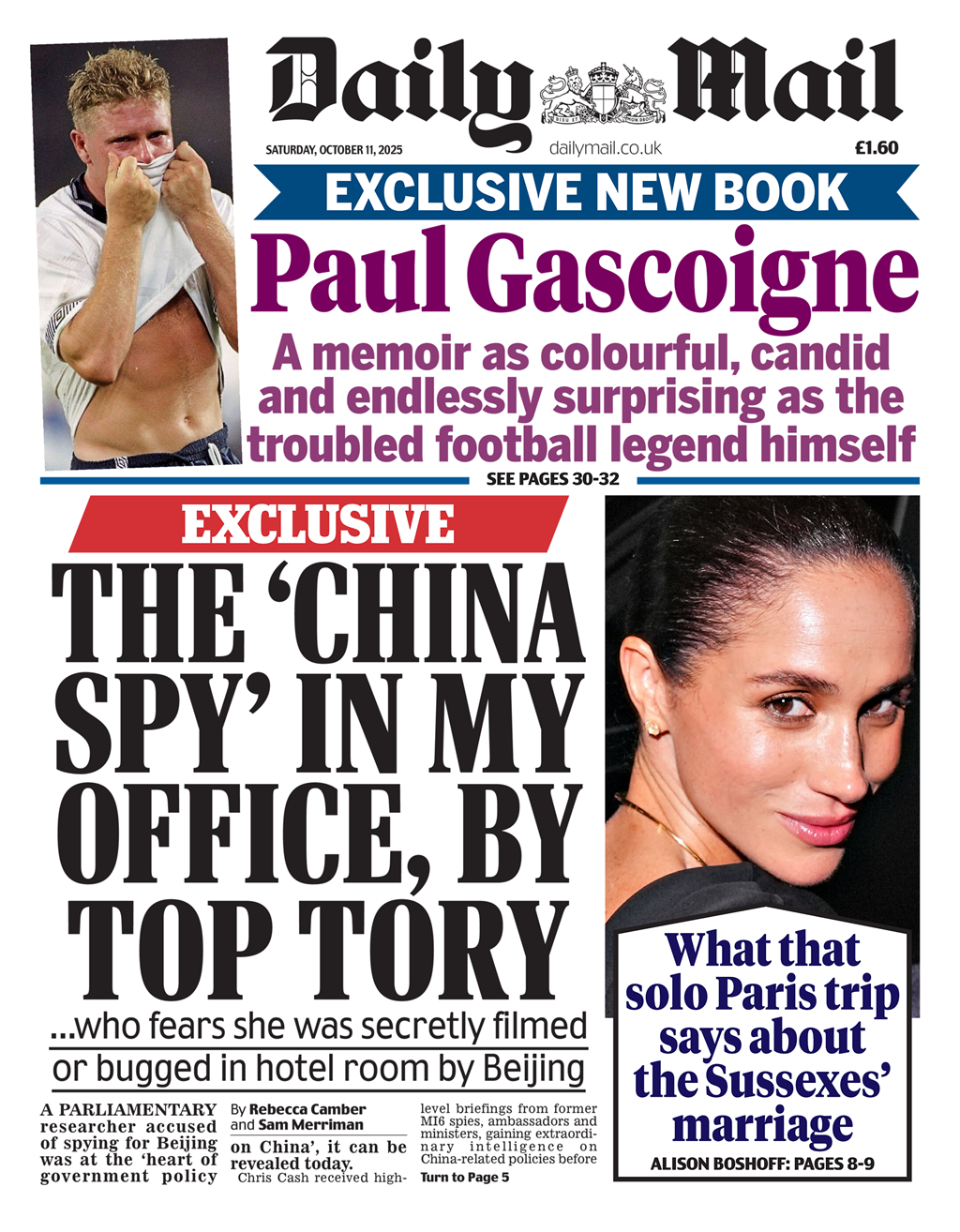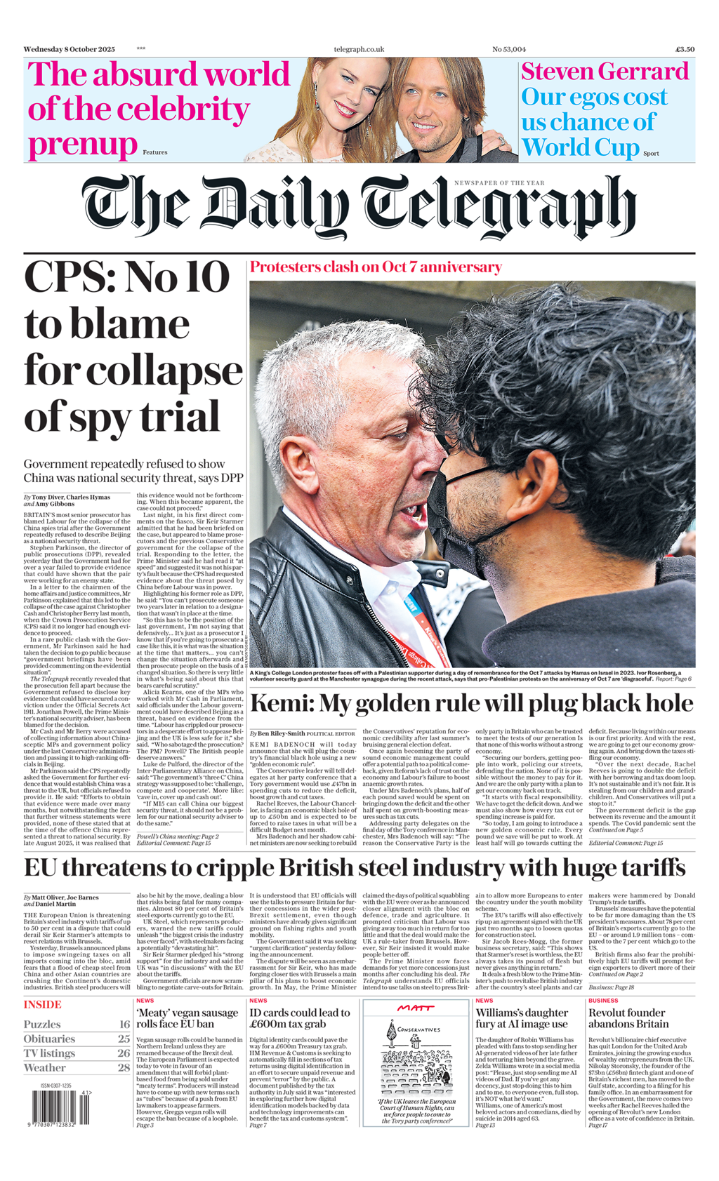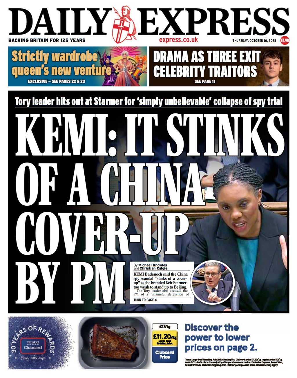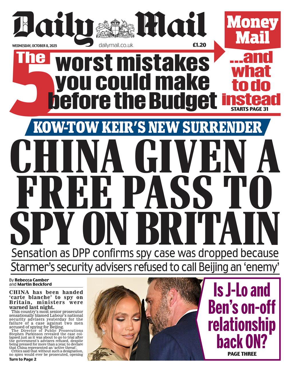 [Labour secretly sabotaged the trial of two alleged spies after refusing to brand China an "enemy", according to The Daily Telegraph.]