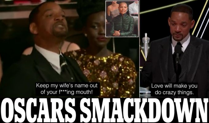 If it had just been the slap I'd have thought it maybe was staged but the exchange afterwards it's pretty clear what's happened. Messy, really. He was laughing but Jada looked annoyed (tbf I can appreciate why, now knowing why her hair is short) but he's obviously then seen that she's upset and decided to do something about it. Their odd marital issues are probably all wrapped up in there too, things under the surface.