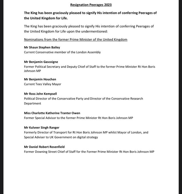 Dame Priti Patel Dame Andrew Jenkyns Sir Michael Fabricant (the one with Blonde Wigs) Dame Amanda Milling Sir Conor Burns Sir Simon Clarke Joining the legions of other knights/dames now on the Tory benches.] Last edited by arista; 09-06-2023 at 04:42 PM. |