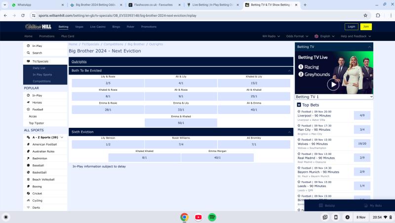 Lily - 35.8% Rosie - 21.3% Khaled - 19.7% Ali - 14.5% Emma - 8.7% (Sorry if this is too off topic from betting odds. Feel free to ignore) |