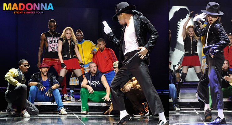 Madonna.com published two pictures from the dress rehearsal last night - showing part of the Michael Jackson tribute that will feature in the show. ![]() http://madonnalicious.typepad.com/ma...rehearsal.html |