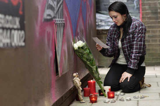 Standing by the wall, where a shrine for Billie is beginning to form, Whitney mourns his loss. Will she and the rest of Billie's loved ones ever recover from the tragedy?