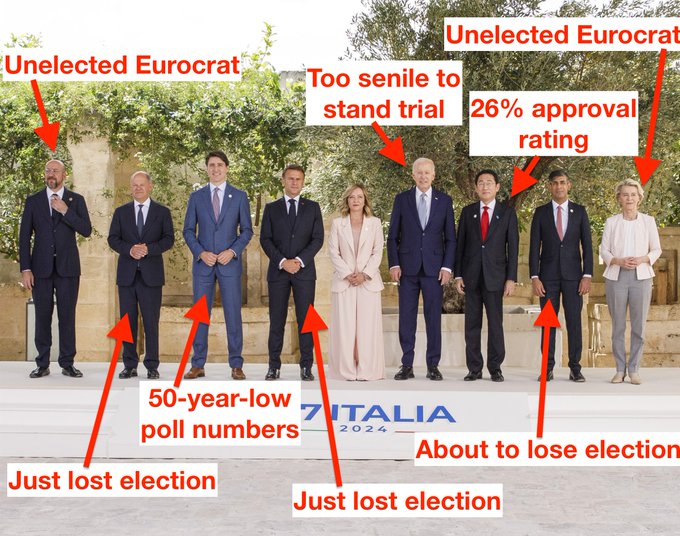 is now in Italy for a G7 Summit a few days away from General Election with Macron, Biden etc.