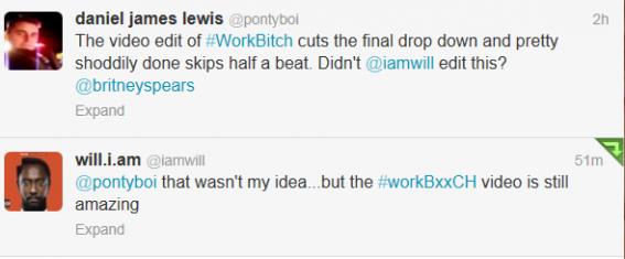 I tweeted WILL.I.AM about how I thought the cut of the breakdown at the end was poorly edited musically and he tweeted back!