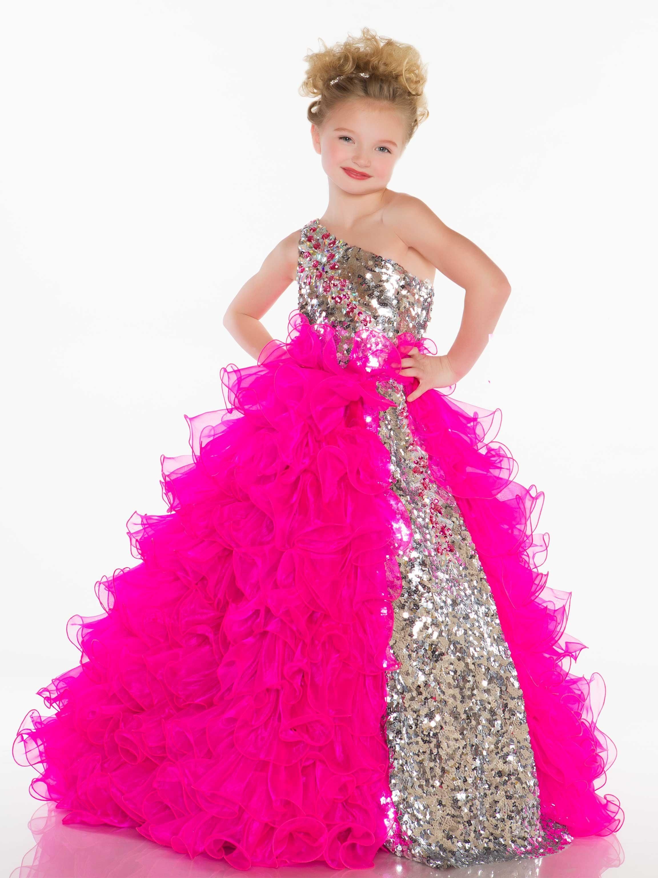 That child is wearing make-up and the dress would obstruct her ability to walk safely I think, it seems to be a bit too long.