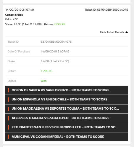Im taking a guess that you do BTTS ACCAS Micheal? But yeah, i remember you last season Micheal, why don't you post a screenshot? Last edited by Swan; 08-09-2019 at 09:58 AM. |