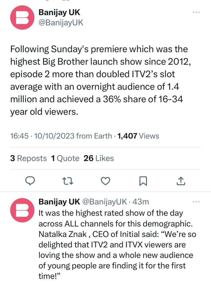 The fact they're retaining over 1m in the overnights is a good sign, especially given its also marketed as an ITVX show